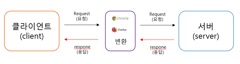 그것을 가능하게 해주는것이 바로 browser 이다. 컴퓨터에서 browser 를 통해서 서버에 요청을 하면 응답을 받는데 다시 browser 가 그 요청을 우리가 볼 수 있는 화면으로 변화시켜서 출력해 주는 것이다.