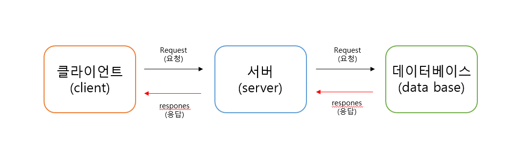 (서버와 DB는 클라이언트와 마찬가지로 컴퓨터 이다. 하지만 서버는 데이터의 처리를 담당하고 DB는 데이터의 저장을 주 기능으로 한다고 생각하면 된다.)