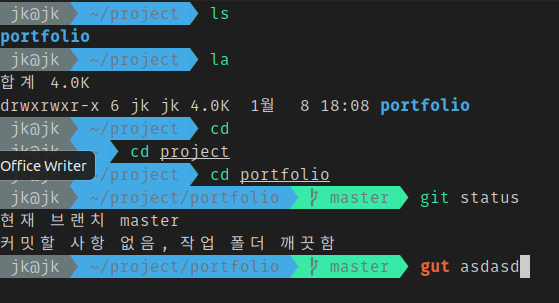 아래의 터미널 처럼 실행 되지 않는 것은 색이 변해서 나온다.