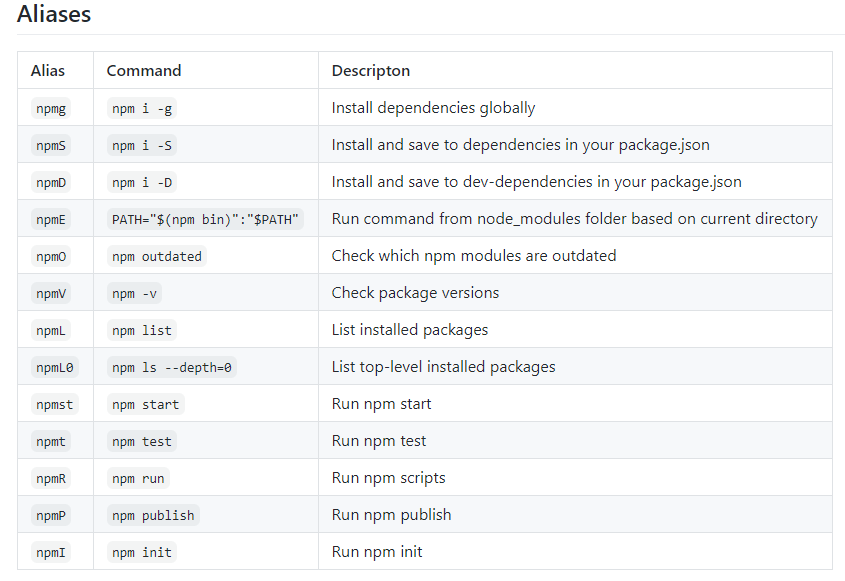 예를 들어 npm install -g 는 npmg 로 사용 할 수 있다는 것?!