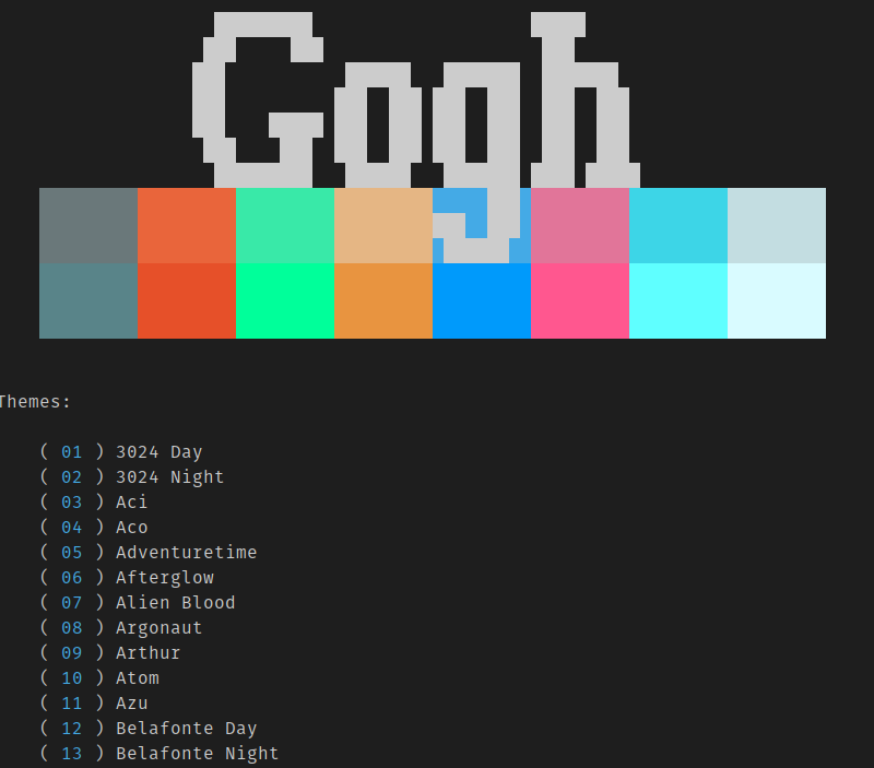 Gogh 테마를 설정하면 D2Coding 의 폰트가 깨진다. 그럼 다시 다른 폰트를 다운받아서 설정해 주어야 하는데