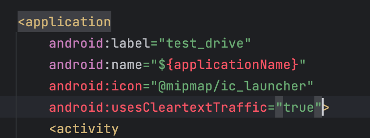 마지막 줄에 있는 android:usesCleartextTraffic="true" 를 넣어주고 저장 후 실행하면 해결.