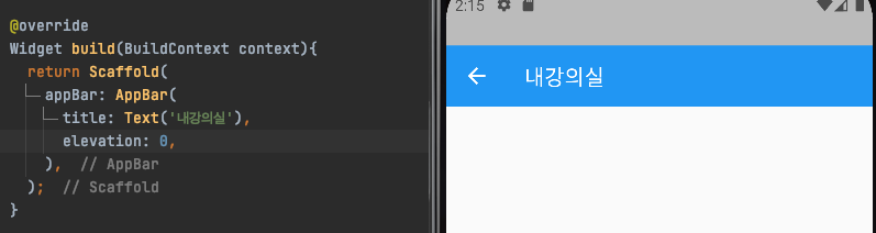 앱바 또는 바텀바 등의 위젯에서 음영을 줄 수있는 속성값.